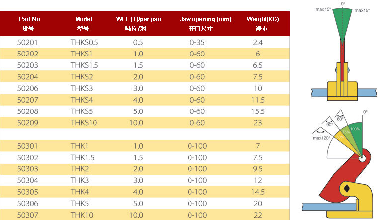 歐威THK/THKS系列橫吊鋼板起重鉗 荷載范圍:1-10T.