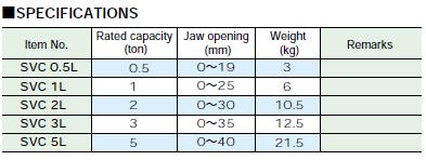 日本世霸SVC-L型立吊夾具技術(shù)參數(shù):