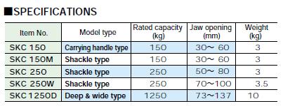 日本世霸SKC混凝土制品吊夾具技術(shù)參數(shù):