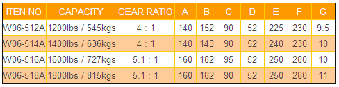 臺灣至光W型進口手搖絞盤技術參數: