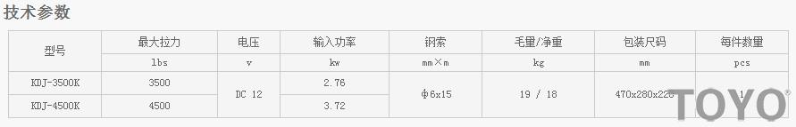 日本東洋TOYO KDJ-3500K--KDJ-4500K型電動(dòng)絞盤技術(shù)參數(shù):