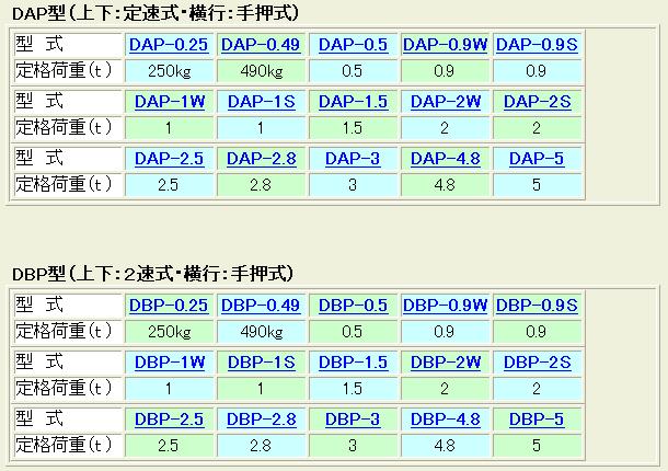 日本DA-DB型象牌電動葫蘆具體規(guī)格: