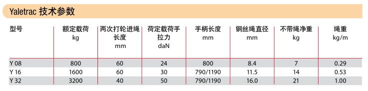 德國耶魯Yaletrac鋼絲繩拉緊器技術參數(shù):