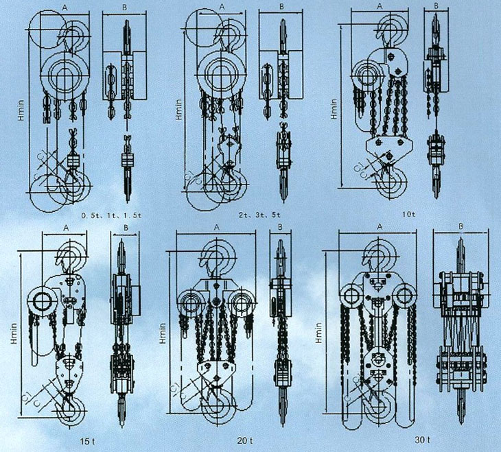 飛鴿HSZ型0.25T-30T A類手拉葫蘆結(jié)構(gòu)圖: