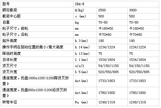 浙江儲力SBA-E25(30)手動液壓搬運車技術參數(shù):