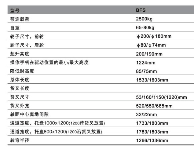 浙江西林BFS平板搬運(yùn)車技術(shù)參數(shù):