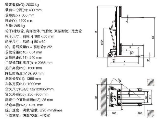 浙江西林SJJA20E叉車技術(shù)參數(shù):